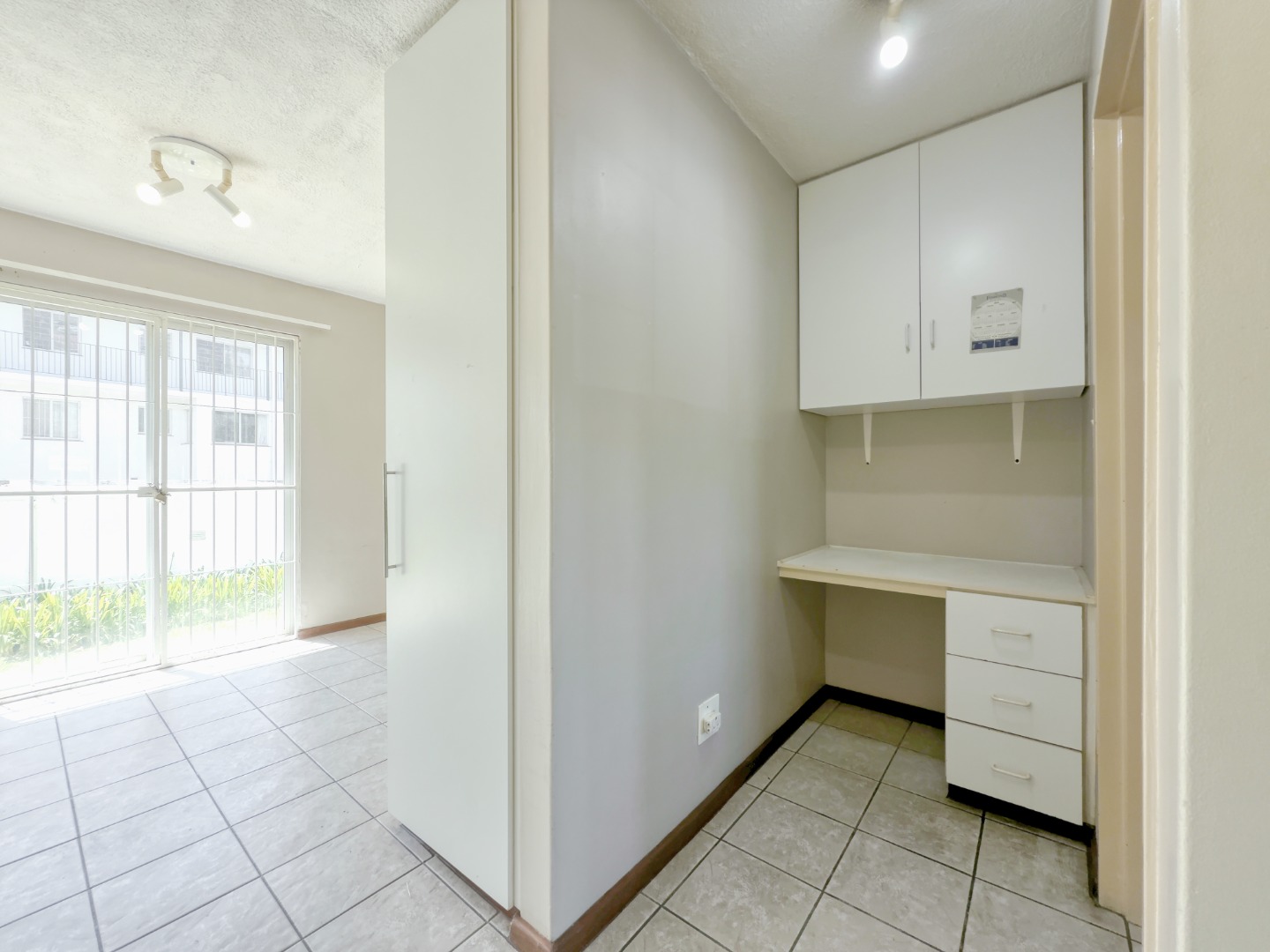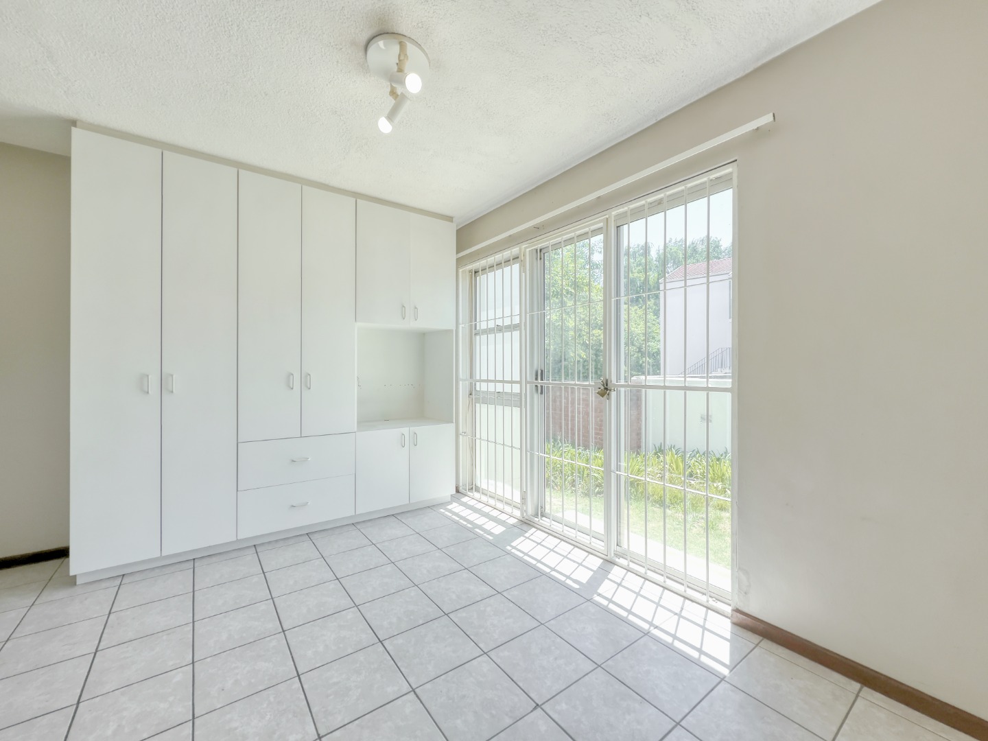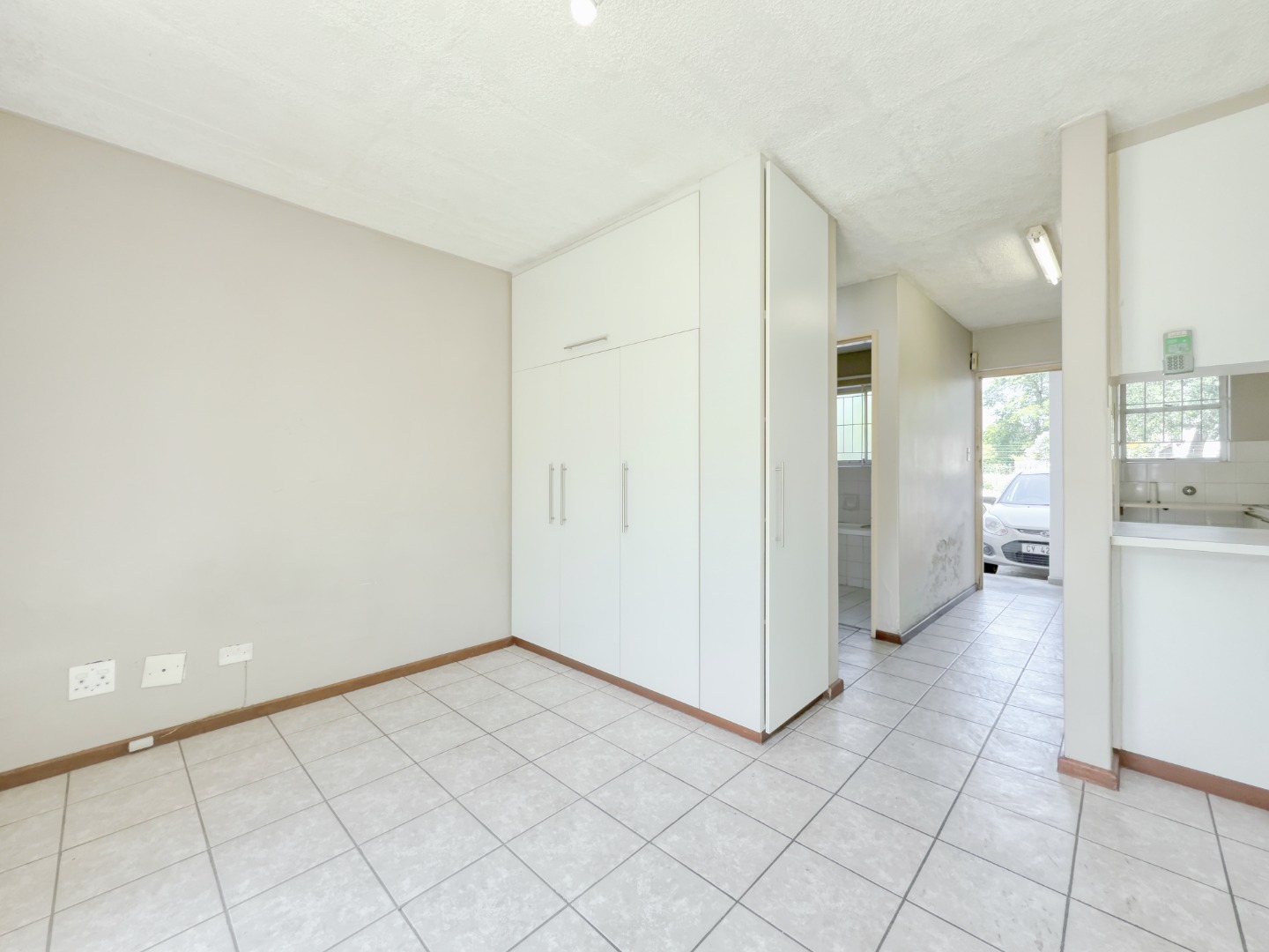 Step inside and you’re met with a clean, open layout that draws your eye straight through the studio space and out the sliding door onto the green lawn. The shared garden sits right in front of the unit with no walkway or foot traffic, creating a surprisingly private and calm indoor–outdoor connection.