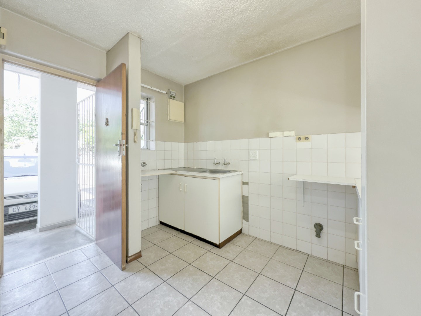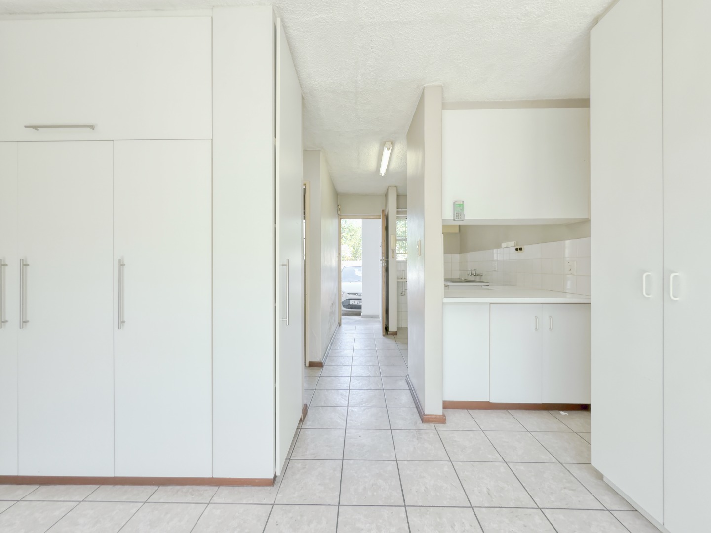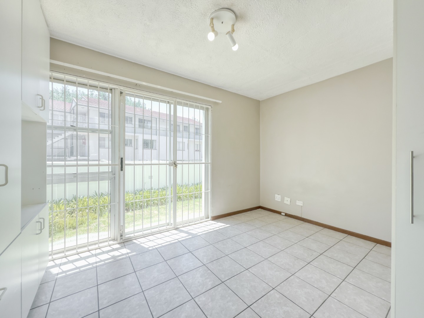 Step inside and you’re met with a clean, open layout that draws your eye straight through the studio space and out the sliding door onto the green lawn. The shared garden sits right in front of the unit with no walkway or foot traffic, creating a surprisingly private and calm indoor–outdoor connection.