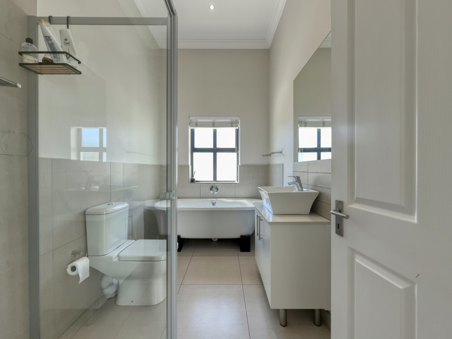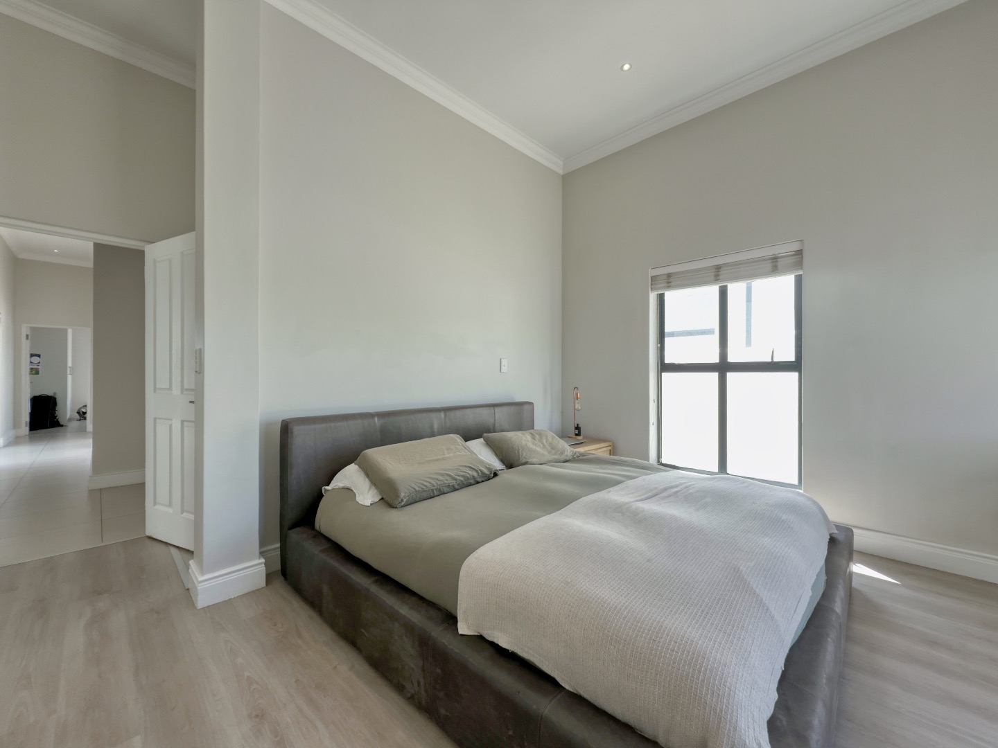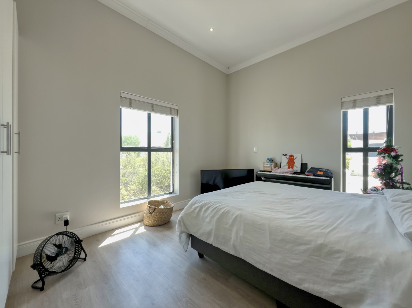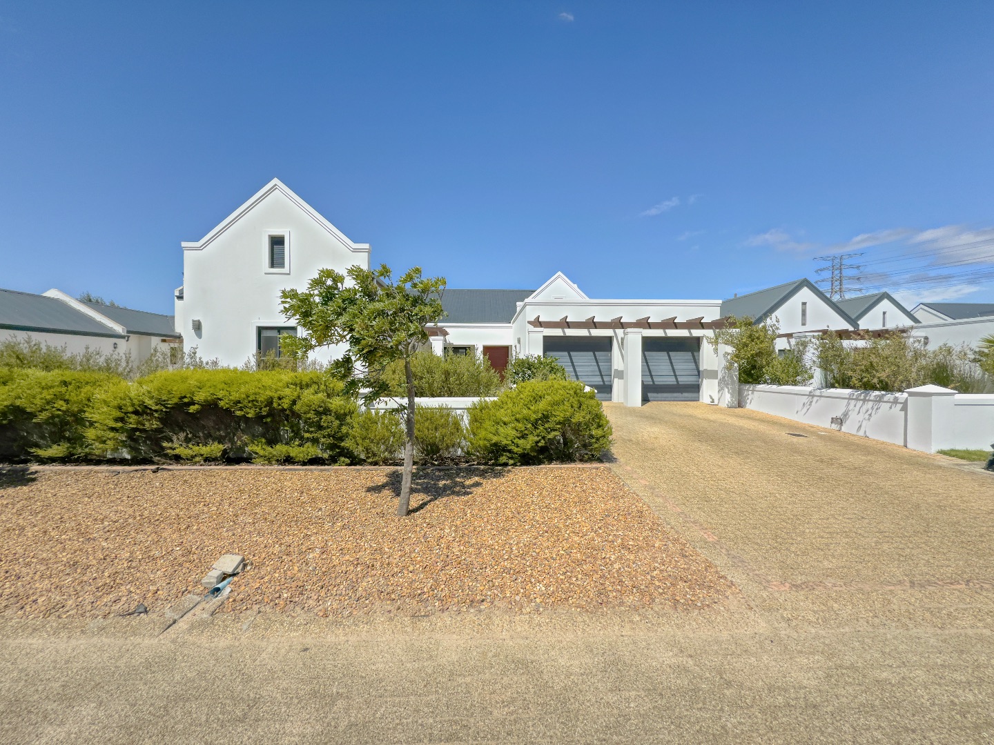 Discover modern living in this exquisite 3-bedroom, 3-bathroom residence nestled within the prestigious Croydon Olive Estate in Somerset West. This property boasts a contemporary architectural style with clean white walls and distinctive gabled roofs, presenting excellent kerb appeal. The well-maintained exterior features neat landscaping and a paved driveway leading to a double garage, ensuring ample parking and convenience.