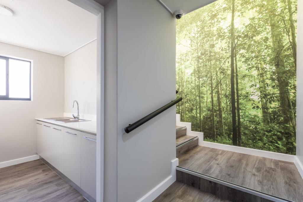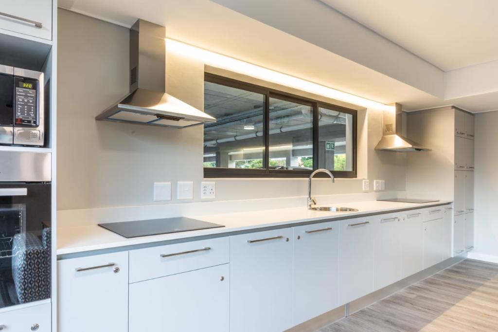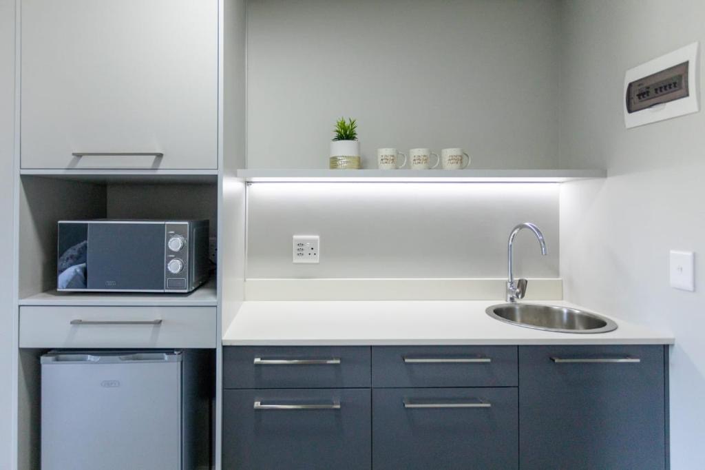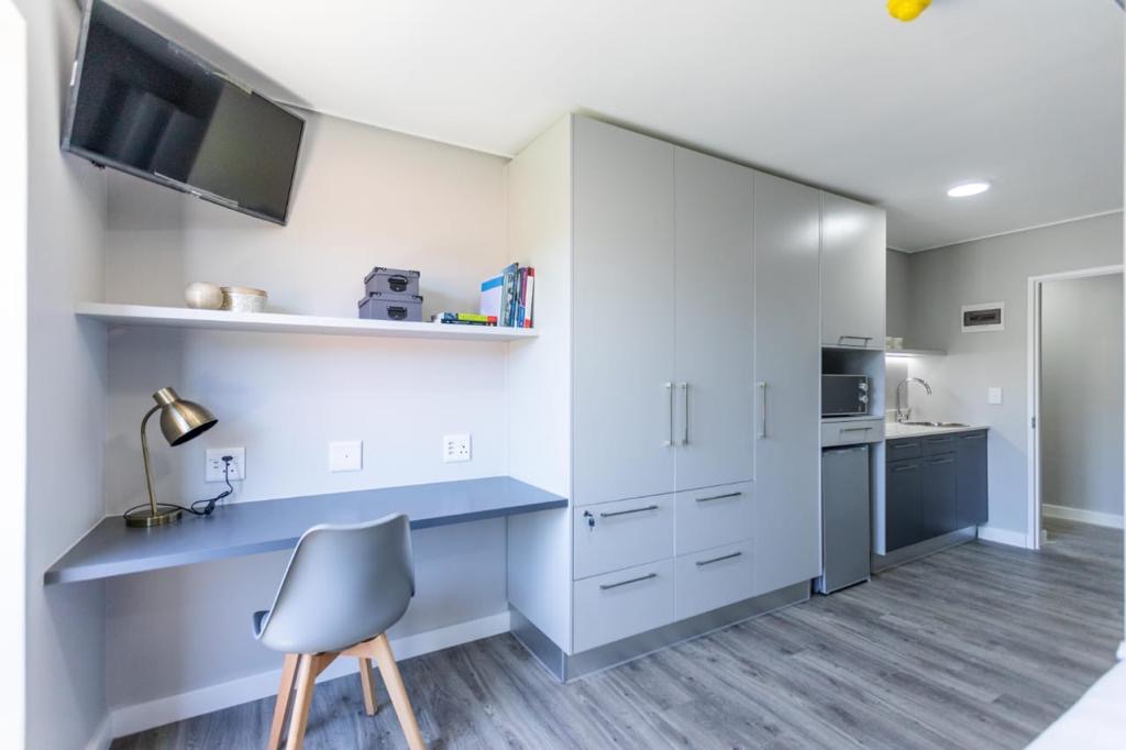 Modern 1-bedroom studio apartment with kitchenette, en-suite bathroom & study nook.
