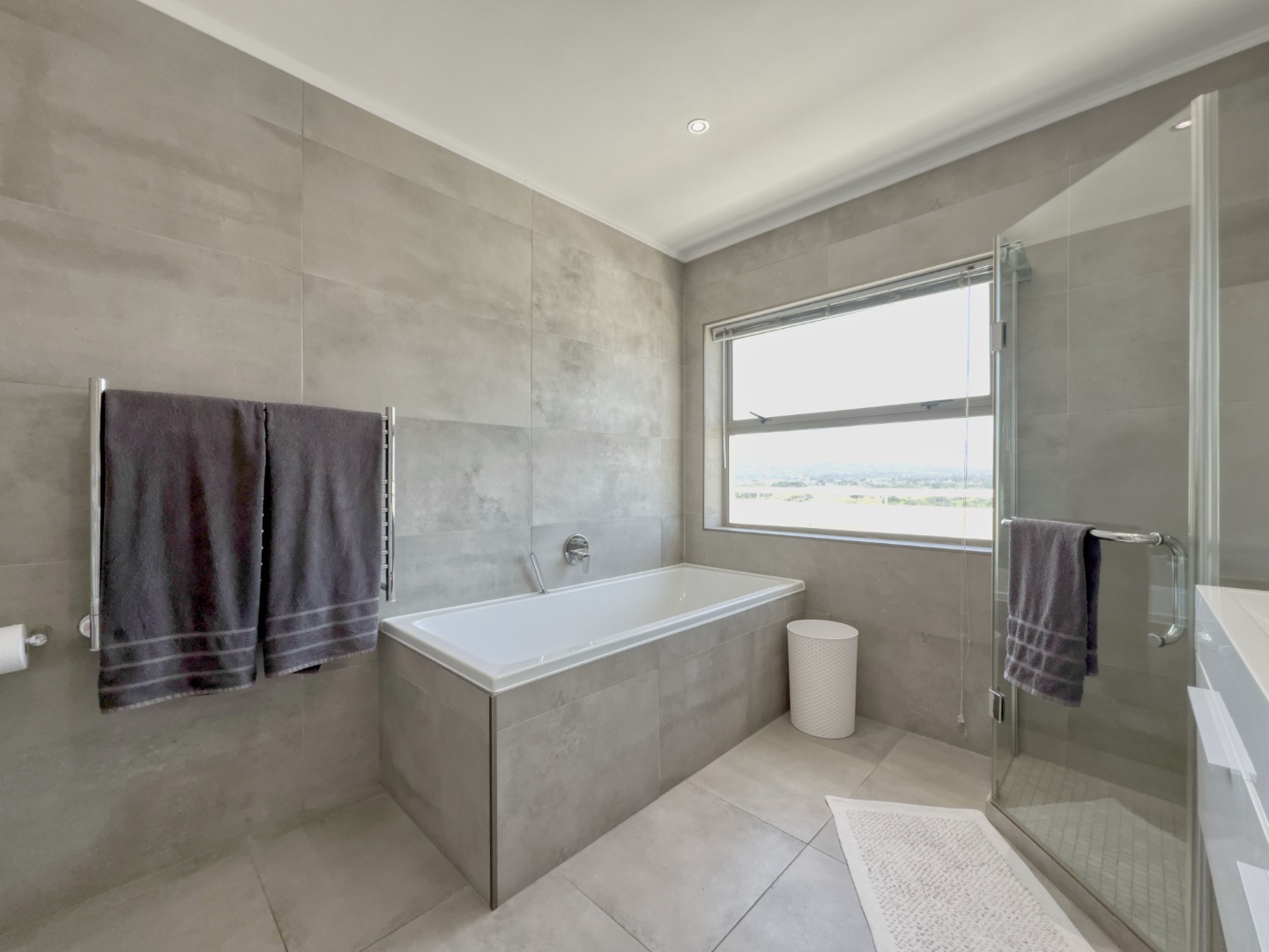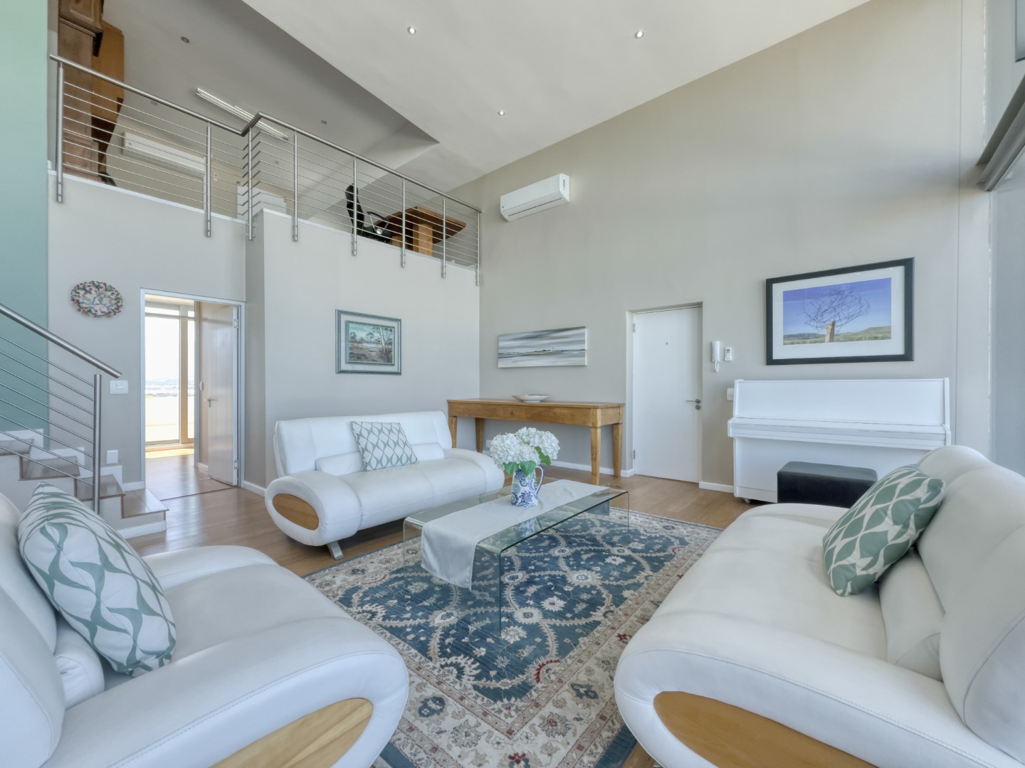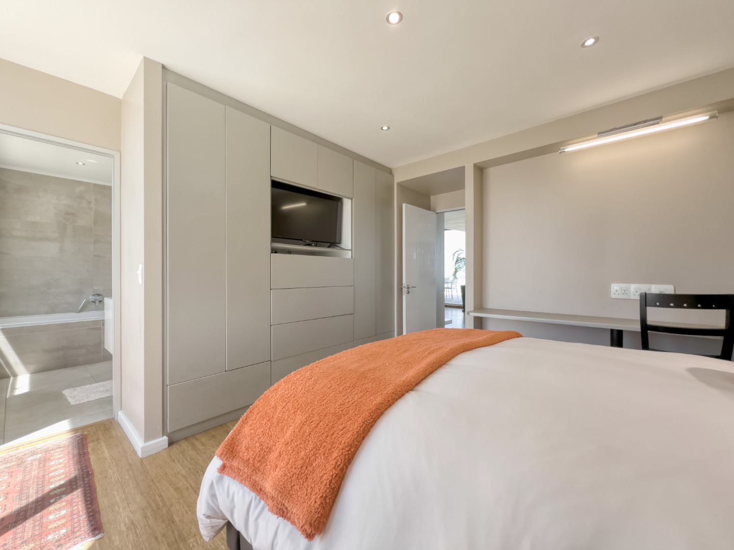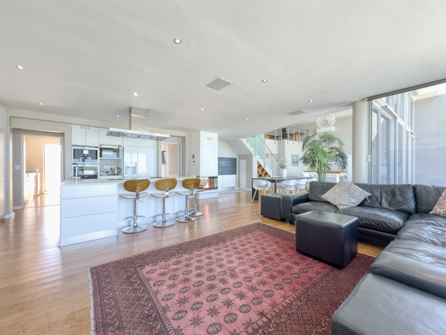This impeccable 270m² penthouse offers luxurious living with bamboo flooring throughout and 300m² of outdoor entertainment space featuring artificial grass and Grappa timber decks. The master suite opens up onto the private rooftop terrace, which boasts an enclosed jacuzzi with incredible sea views, perfect for relaxation. The guest suites also have balcony access overlooking the entire Winelands.