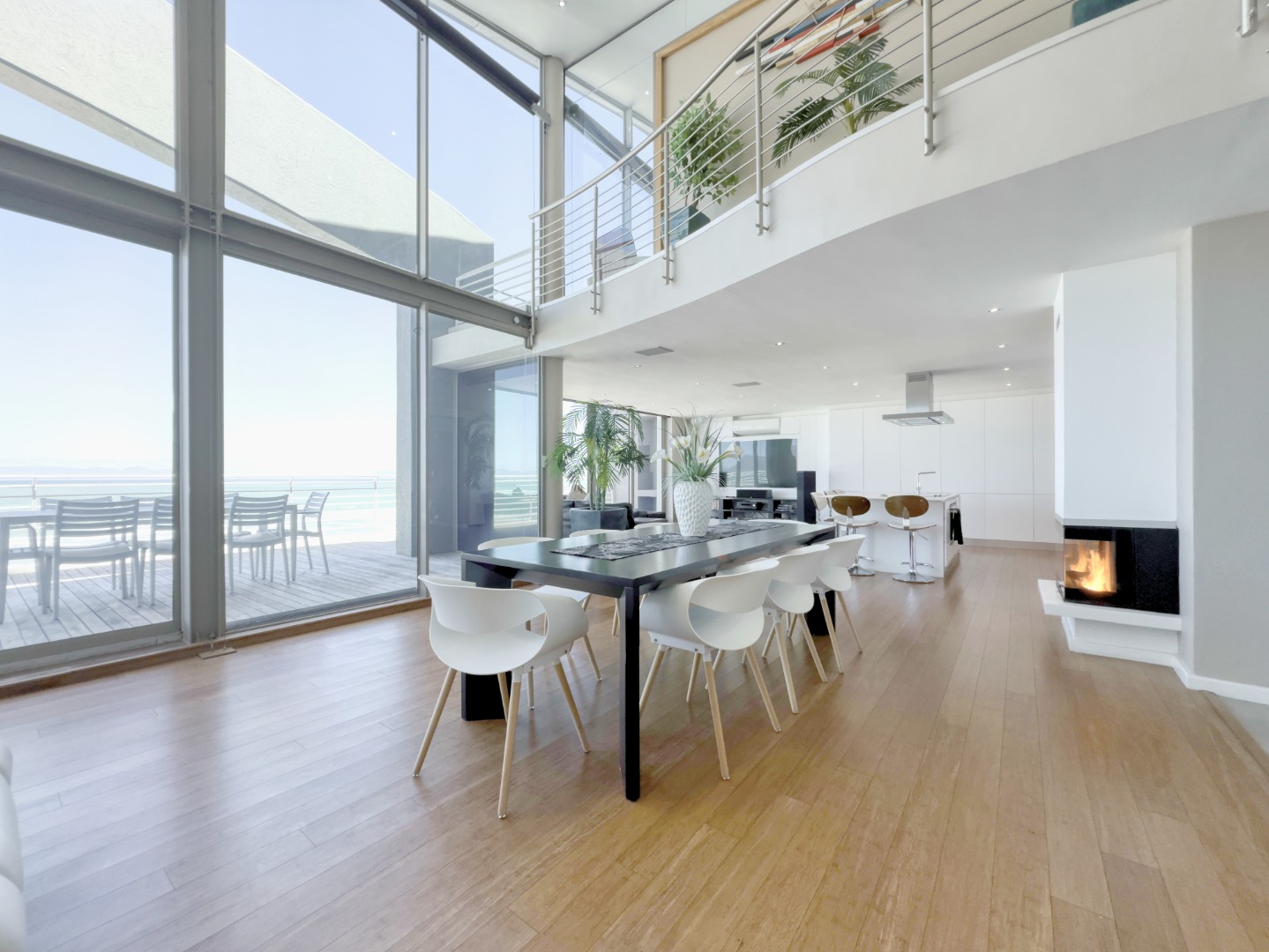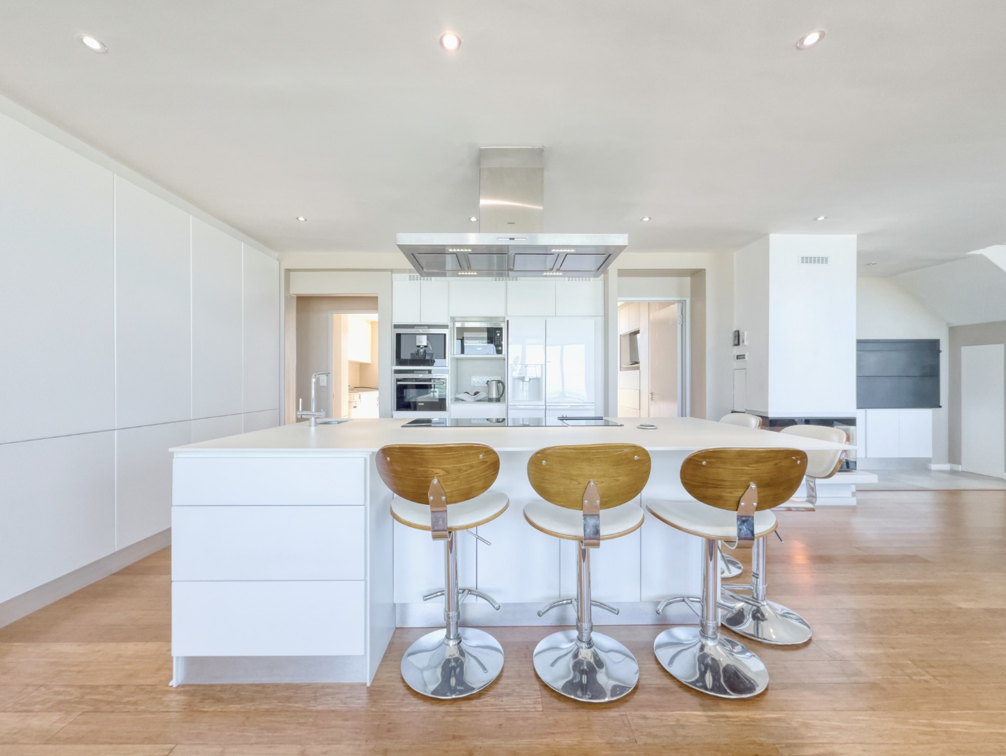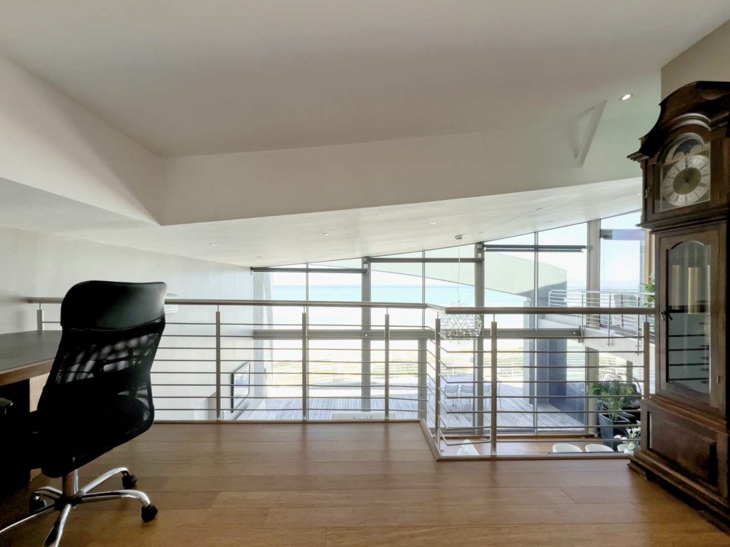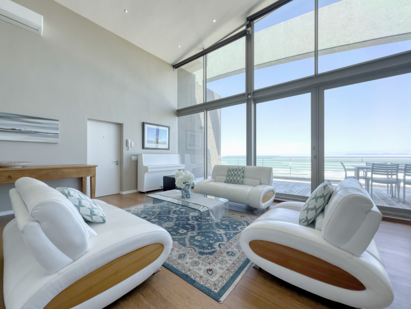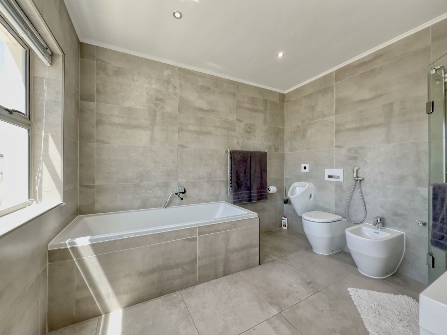 This impeccable 270m² penthouse offers luxurious living with bamboo flooring throughout and 300m² of outdoor entertainment space featuring artificial grass and Grappa timber decks. The master suite opens up onto the private rooftop terrace, which boasts an enclosed jacuzzi with incredible sea views, perfect for relaxation. The guest suites also have balcony access overlooking the entire Winelands.