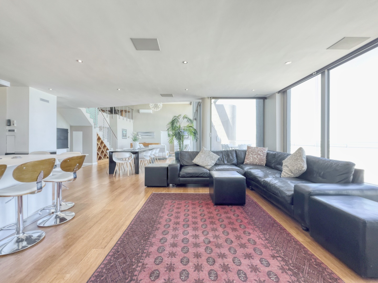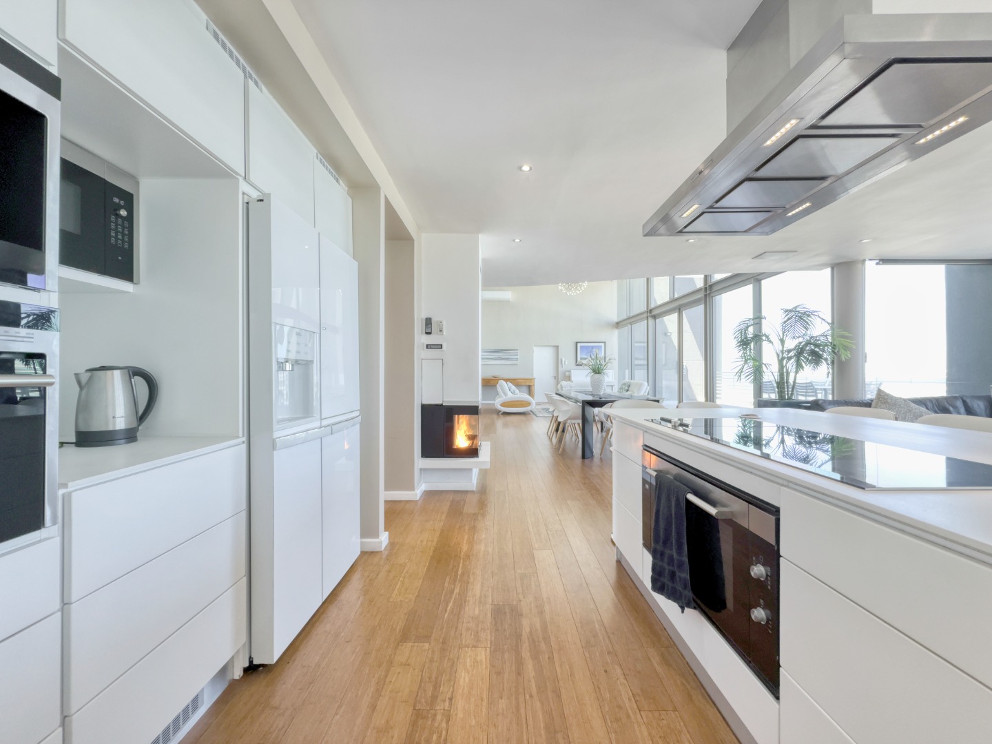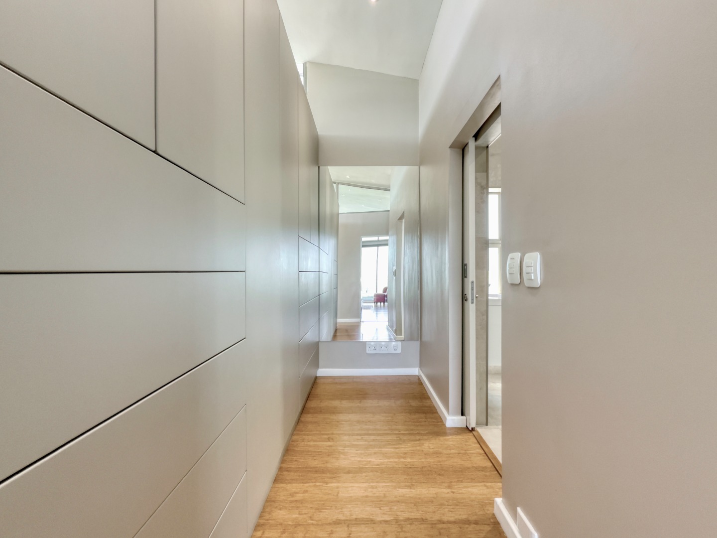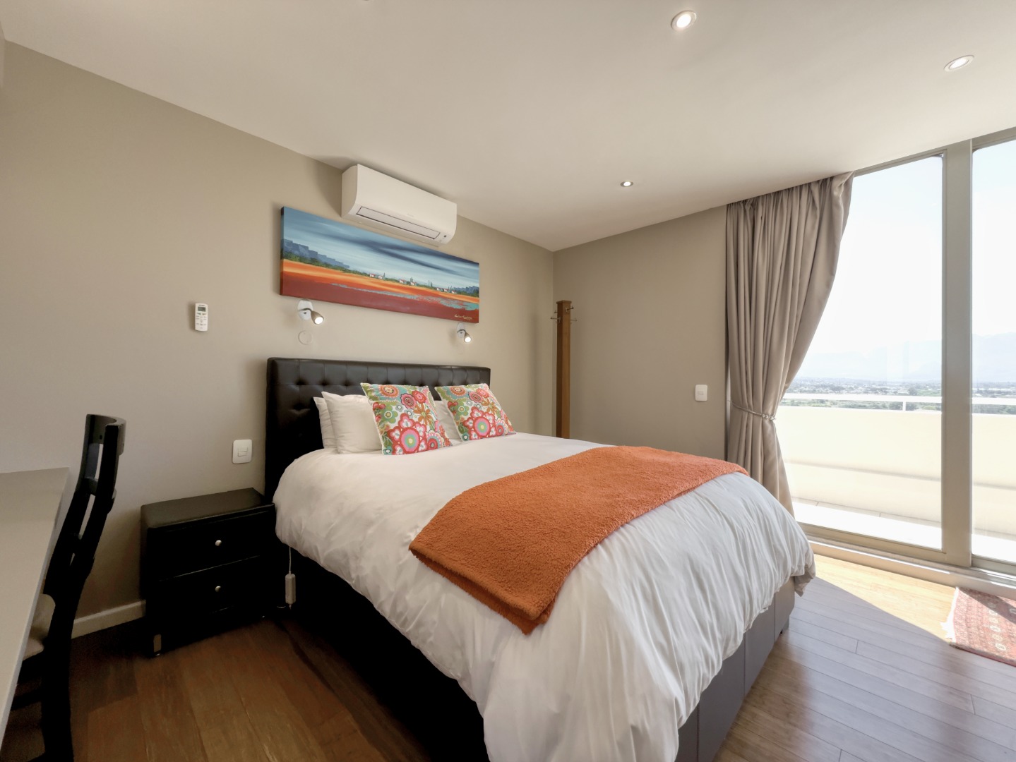This impeccable 270m² penthouse offers luxurious living with bamboo flooring throughout and 300m² of outdoor entertainment space featuring artificial grass and Grappa timber decks. The master suite opens up onto the private rooftop terrace, which boasts an enclosed jacuzzi with incredible sea views, perfect for relaxation. The guest suites also have balcony access overlooking the entire Winelands.