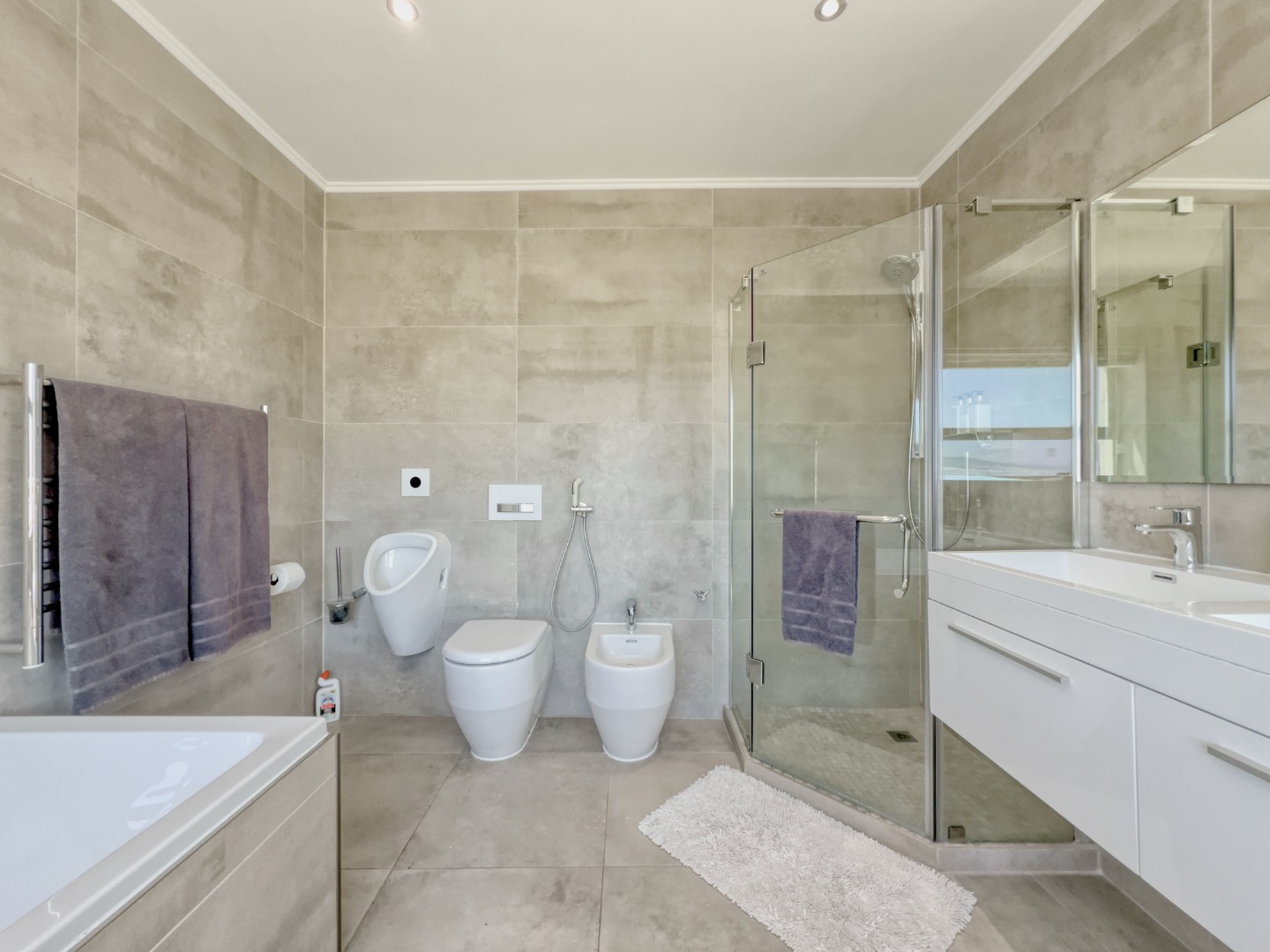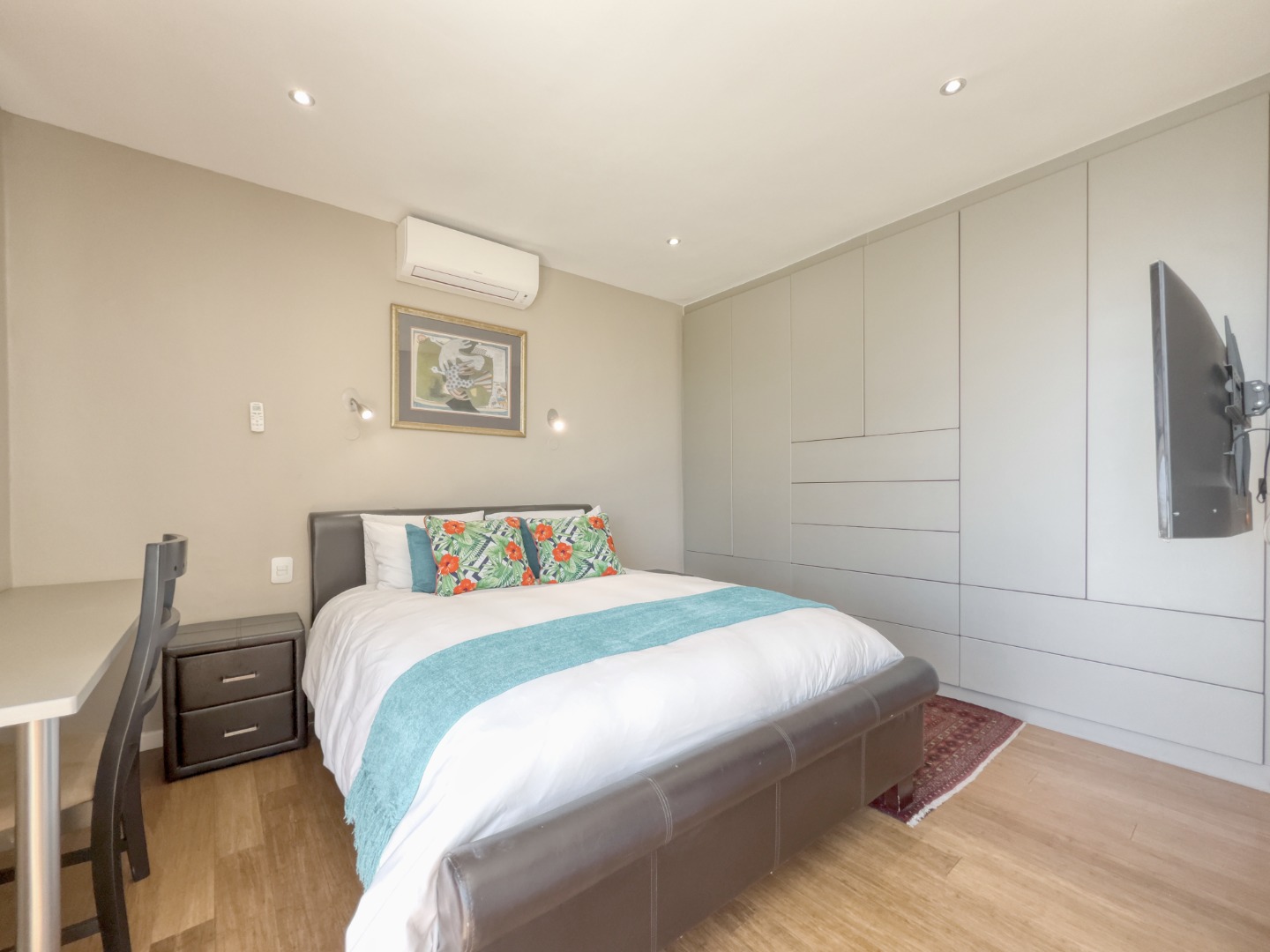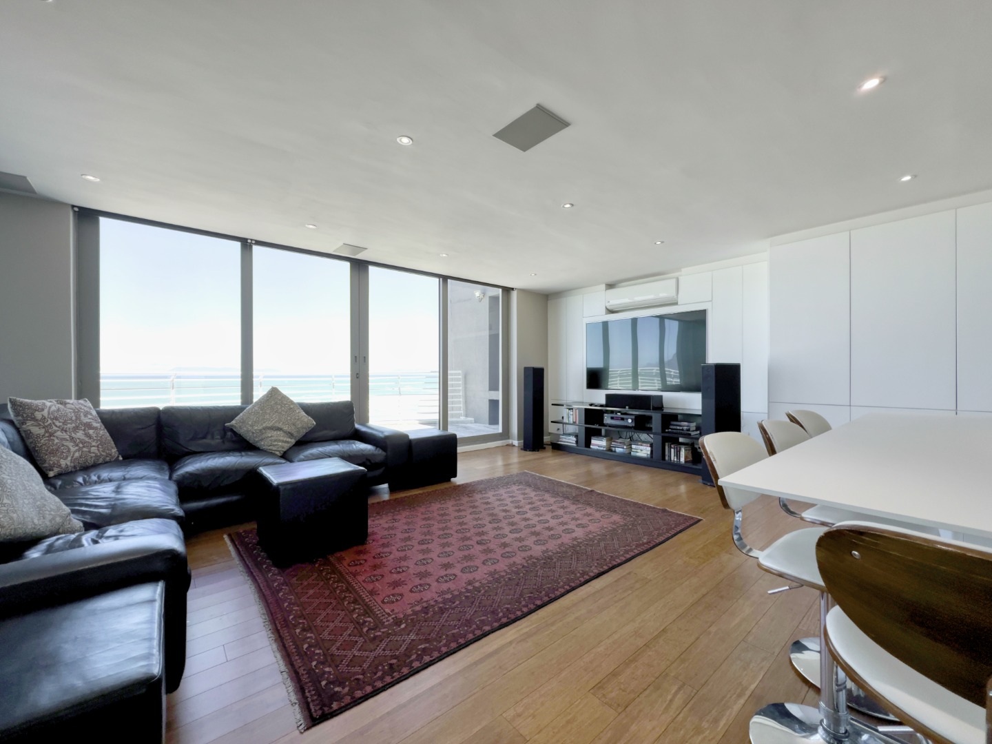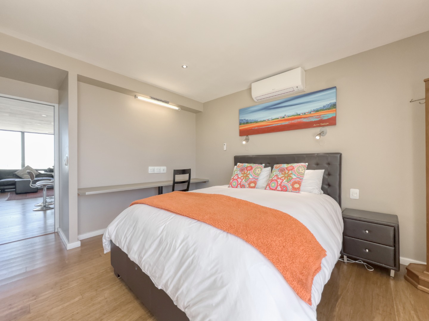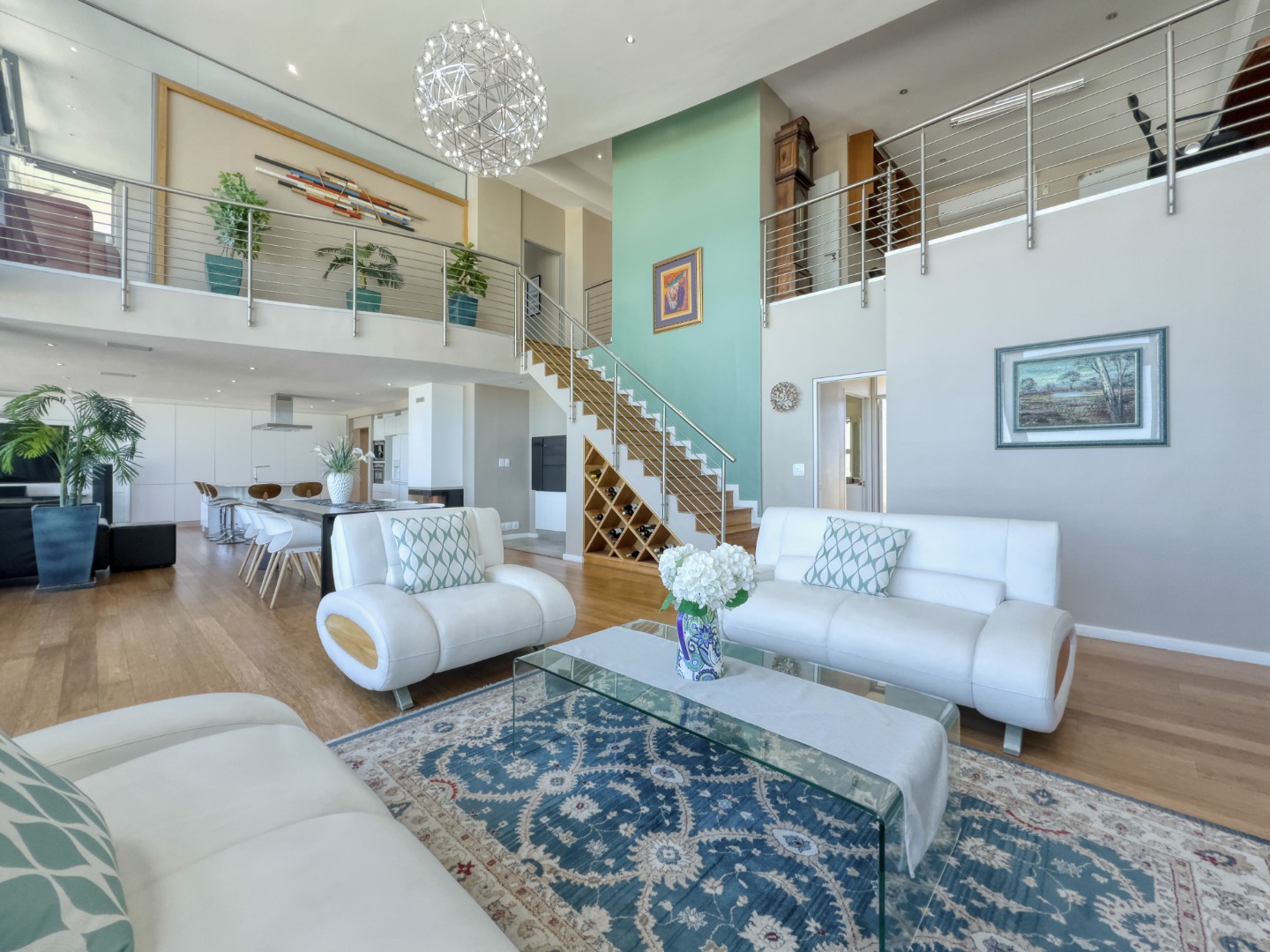 This impeccable 270m² penthouse offers luxurious living with bamboo flooring throughout and 300m² of outdoor entertainment space featuring artificial grass and Grappa timber decks. The master suite opens up onto the private rooftop terrace, which boasts an enclosed jacuzzi with incredible sea views, perfect for relaxation. The guest suites also have balcony access overlooking the entire Winelands.