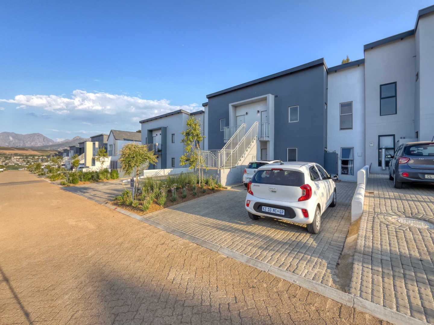 This contemporary 2-bedroom, 1-bathroom apartment offers a modern and convenient lifestyle within a secure estate in the picturesque Winelands. Spanning 52 square metres, the unit features an open-plan design that seamlessly connects the lounge, dining area, and kitchen, creating a bright and inviting living space. Large windows throughout ensure abundant natural light, complemented by recessed lighting for evenings. The interior boasts a clean aesthetic with neutral walls and durable grey tiled flooring, providing a versatile canvas for personal decor. The heart of this home is its sleek, modern kitchen, equipped with dark grey cabinetry, dark countertops, and integrated appliances including a gas hob, built-in oven, and microwave. This compact yet highly functional space is perfect for everyday cooking. The two bedrooms are designed for comfort, featuring neutral tones and tiled flooring, ready to be furnished to your taste. The single bathroom is well-appointed, catering to the needs of residents. Ideal for professionals, small families, or those seeking a secure lock-up-and-go residence, this unfurnished apartment provides flexibility. It includes two dedicated parking bays, adding to the convenience. The property is situated within a security estate, offering peace of mind with 24-hour security, an access gate, and electric fencing. Fibre connectivity is available, ensuring high-speed internet access for work or leisure. Enjoy scenic mountain views from this well-located property. Key Features: * 2 Bedrooms, 1 Bathroom * Modern Open-Plan Living Area * Contemporary Kitchen with Integrated Appliances * Durable Tiled Flooring Throughout * Two Dedicated Parking Bays * Secure Estate with 24-Hour Security * Fibre Ready Connectivity * Scenic Mountain Views * 52 sqm Floor Size