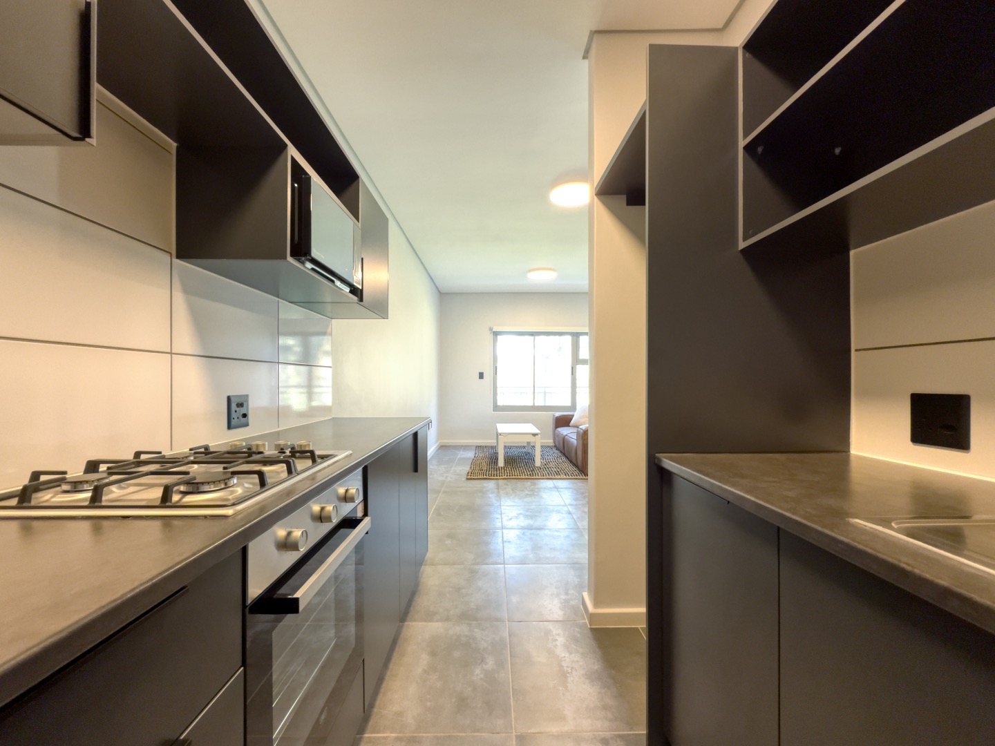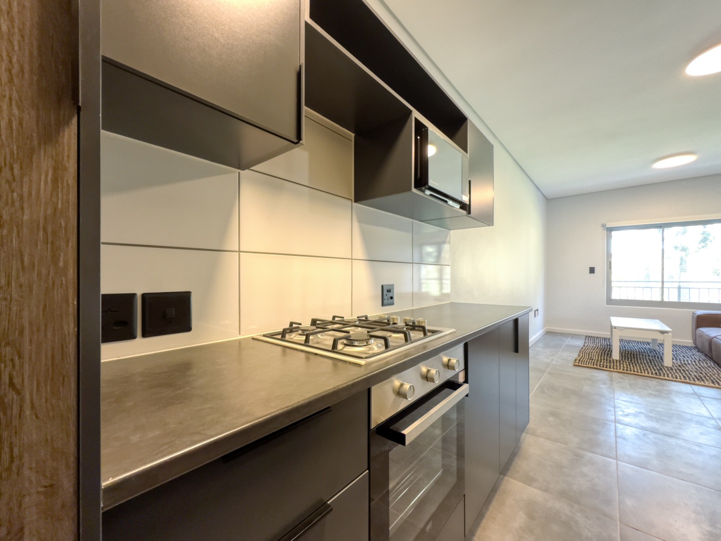 This contemporary 2-bedroom, 1-bathroom apartment offers a modern and convenient lifestyle within a secure estate in the picturesque Winelands. Spanning 52 square metres, the unit features an open-plan design that seamlessly connects the lounge, dining area, and kitchen, creating a bright and inviting living space. Large windows throughout ensure abundant natural light, complemented by recessed lighting for evenings. The interior boasts a clean aesthetic with neutral walls and durable grey tiled flooring, providing a versatile canvas for personal decor. The heart of this home is its sleek, modern kitchen, equipped with dark grey cabinetry, dark countertops, and integrated appliances including a gas hob, built-in oven, and microwave. This compact yet highly functional space is perfect for everyday cooking. The two bedrooms are designed for comfort, featuring neutral tones and tiled flooring, ready to be furnished to your taste. The single bathroom is well-appointed, catering to the needs of residents. Ideal for professionals, small families, or those seeking a secure lock-up-and-go residence, this unfurnished apartment provides flexibility. It includes two dedicated parking bays, adding to the convenience. The property is situated within a security estate, offering peace of mind with 24-hour security, an access gate, and electric fencing. Fibre connectivity is available, ensuring high-speed internet access for work or leisure. Enjoy scenic mountain views from this well-located property. Key Features: * 2 Bedrooms, 1 Bathroom * Modern Open-Plan Living Area * Contemporary Kitchen with Integrated Appliances * Durable Tiled Flooring Throughout * Two Dedicated Parking Bays * Secure Estate with 24-Hour Security * Fibre Ready Connectivity * Scenic Mountain Views * 52 sqm Floor Size