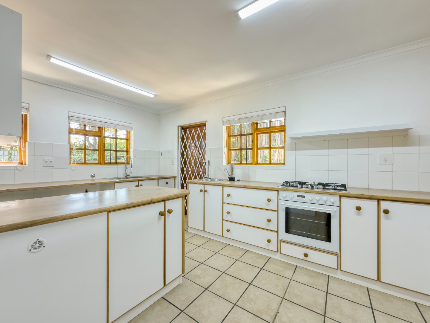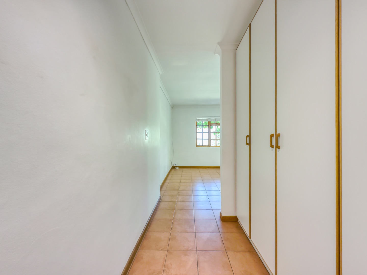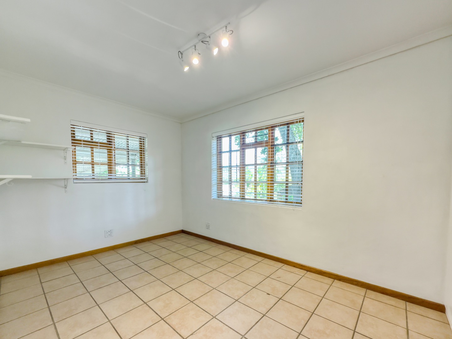 Enjoy a spacious covered patio fitted with a built-in braai, overlooking a lush, tree-lined garden—your own private oasis. The irrigation system ensures the garden stays green year-round.